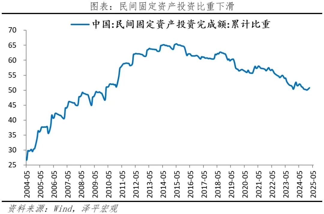 一是民营经济的信心修复。民营企业贡献了“56789”,但近年来民营企业投资意愿弱、缺乏安全感和稳定预期。2024年民间固定资产投资同比-0.1%,远低于3.2%的固投增速;民间固定资产投资占比仅为50%左右,较2015年65%的高位一路下滑。当前民营经济面临的是信心、信用与制度预期的多重收缩,本质是制度层面的不确定性。2025年国家召开民营企业座谈会,《民营经济促进法》落地。重建民营经济信心的关键,是着力修复民营经济信心,推动法制化。若能形成机制性稳定,民营经济将在下半年释放出被压抑的生产能力与风险偏好,推动制造业投资与创新活力同步回暖。